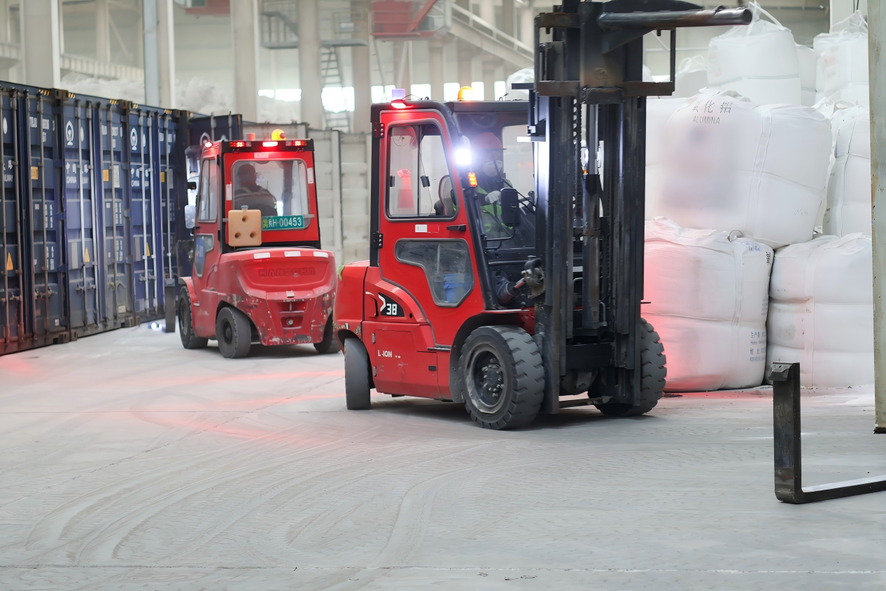 At the bustling alumina unloading site, among the layers of stacked containers, there stands a particularly eye-catching sight - it is a forklift operation team composed of women. They wore bright red safety helmets and bright work clothes, firmly holding the steering wheel with both hands. Their eyes were determined and their movements were skillful. Their expressions and skills were no less than those of male drivers. They moved flexibly between containers and piles of alumina raw materials. With precise operation and stable efficiency, they proved with their strength the correctness of the saying "Who says women are inferior to men? Women can hold up half the sky."